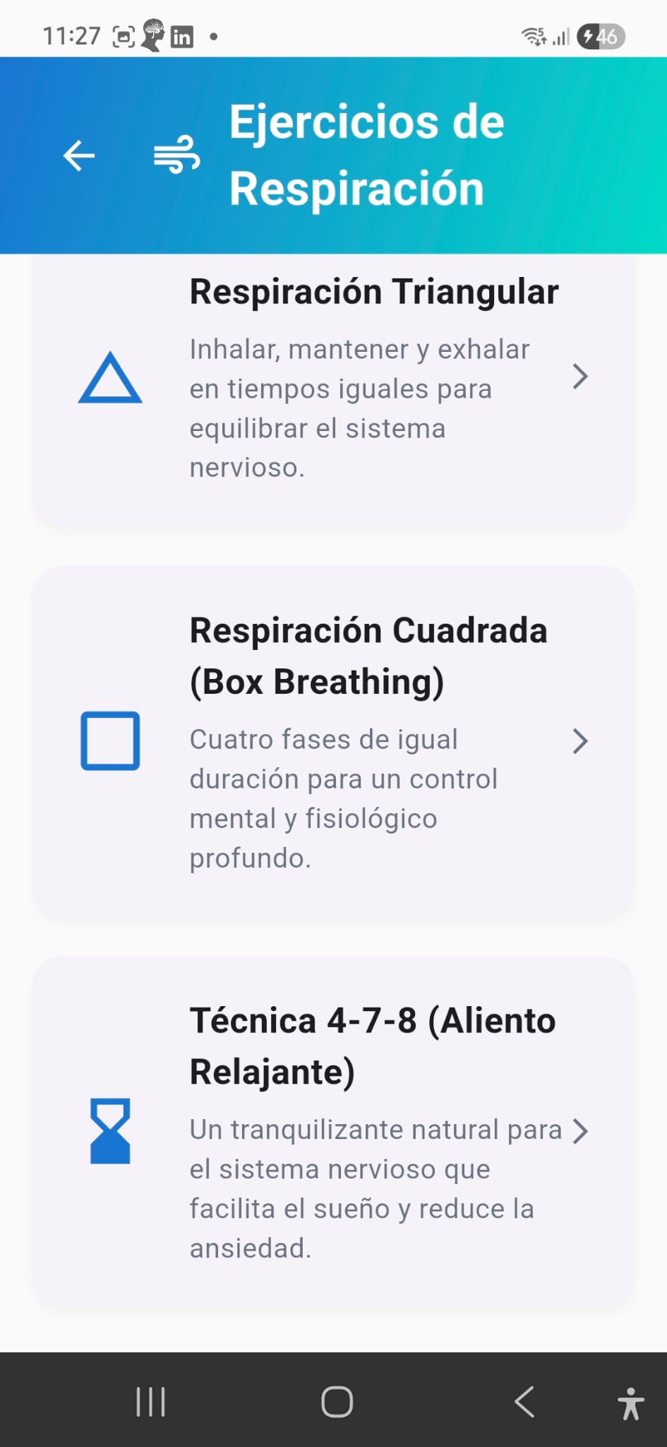 Practica respiración cuadrada, triangular o ritmo lento para calmar y recuperar foco en minutos.