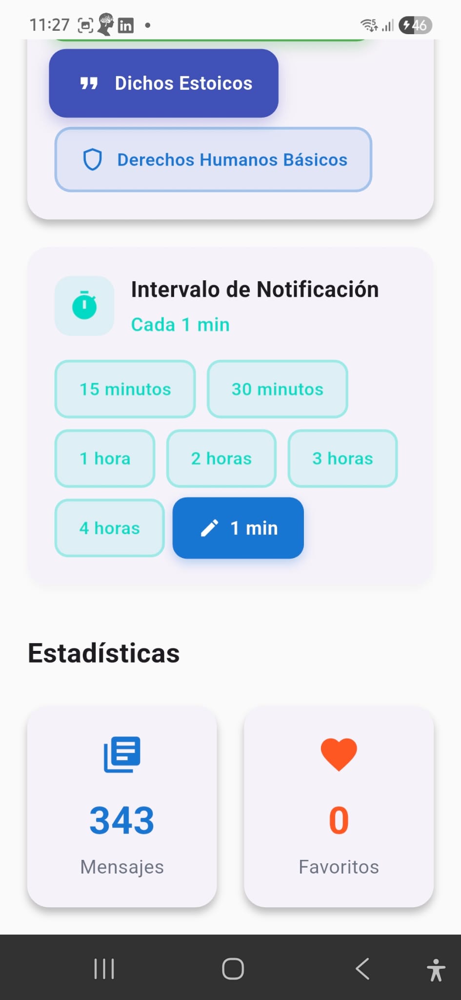 Recibe mensajes a tu ritmo: cada 15–30 min o cada 1–4 horas para reforzar el hábito de revisión.