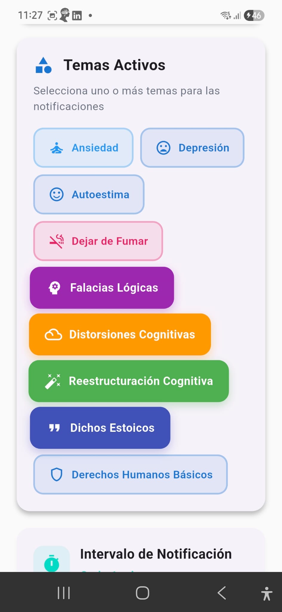 Ansiedad, depresión, autoestima, dejar de fumar, distorsiones, reestructuración, estoicos y derechos humanos.